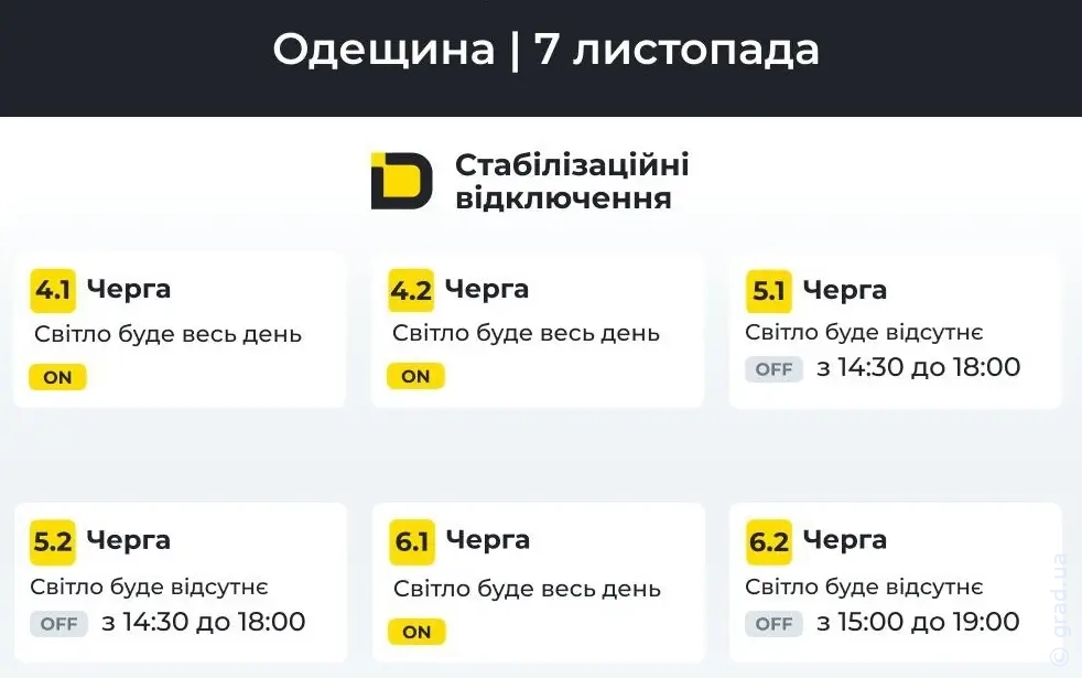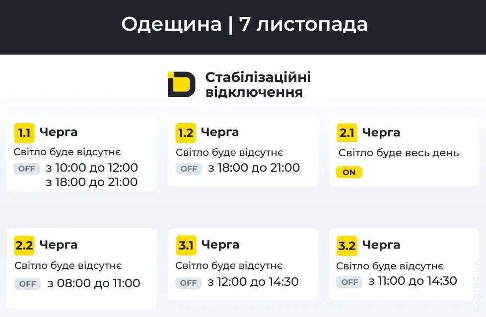 НОВИНИ ГРАД » Відключення світла, води та газу » Відключення світла в Одесі 7 листопада 2025 року
