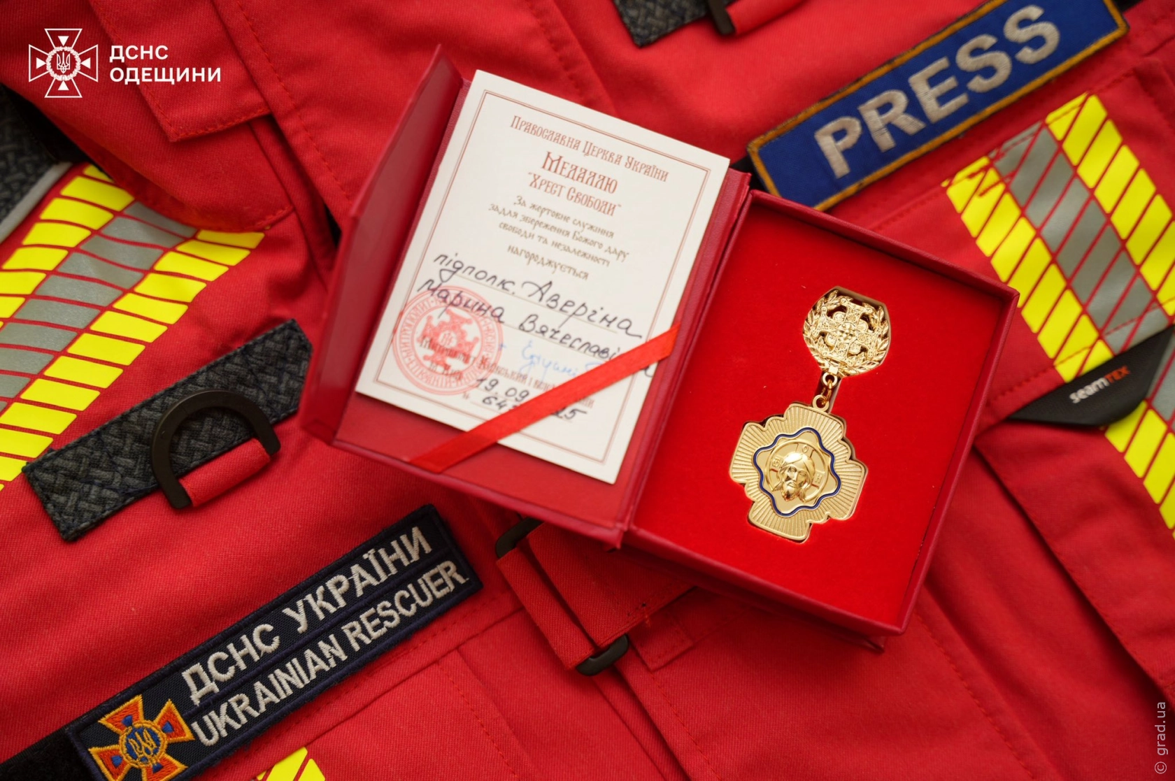 Прес-офіцер ДСНС на Одещині Марина Аверіна отримала одну з найвищих церковних нагород – медаль «Хрест Свободи». Церемонія нагородження відбулася за участю митрополита Київського та всієї України, предстоятеля Православної Церкви України Епіфанія.
