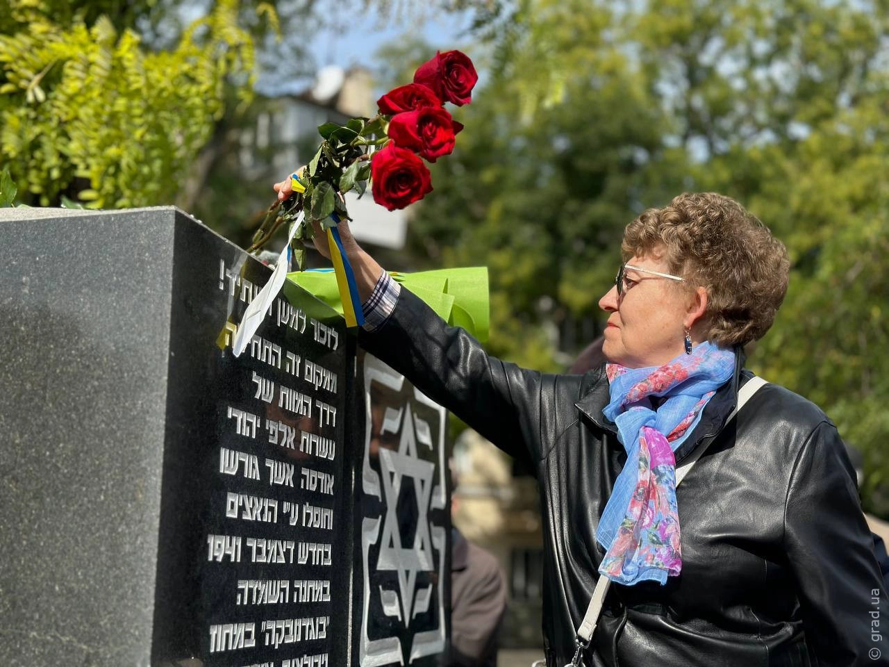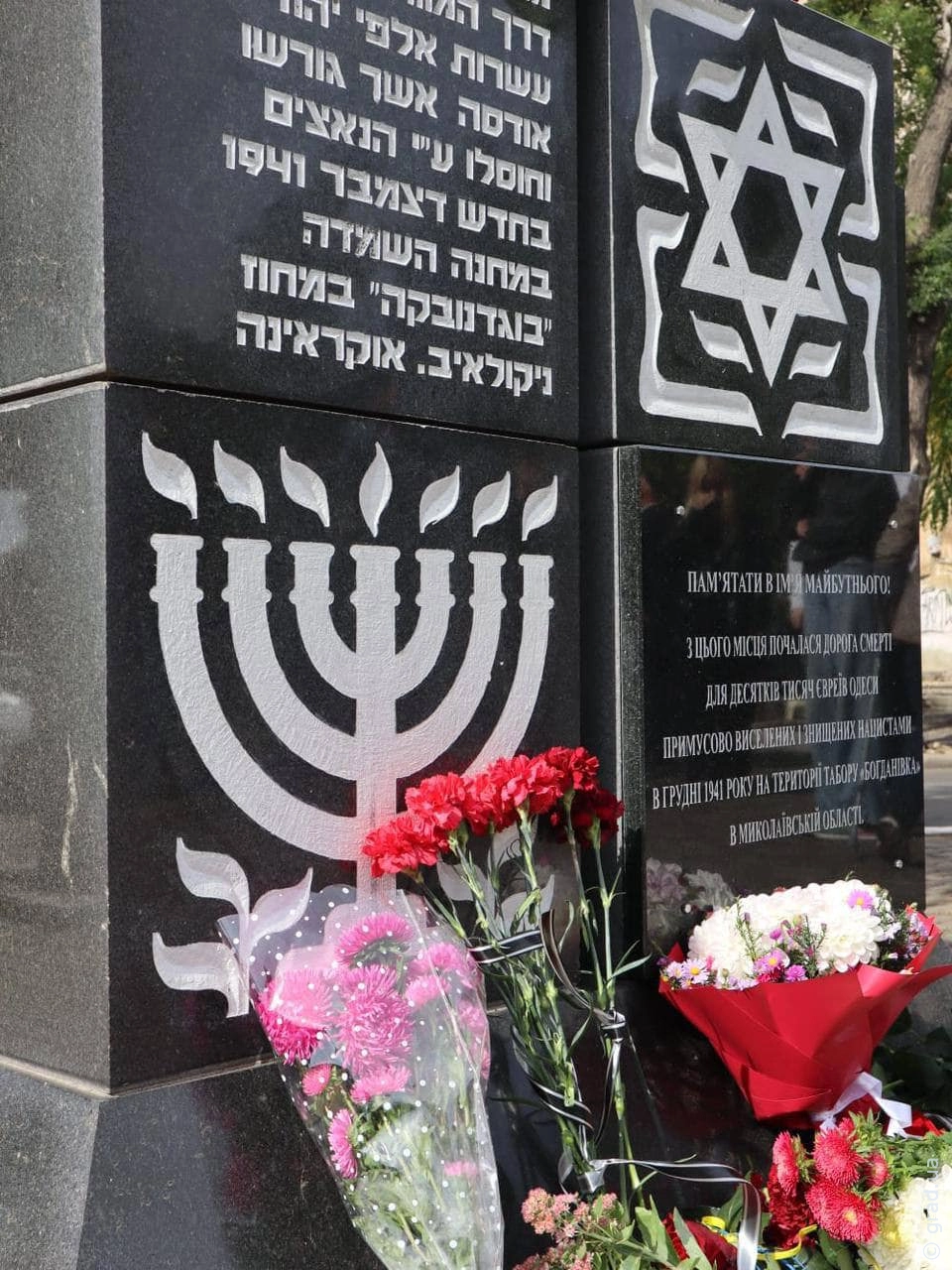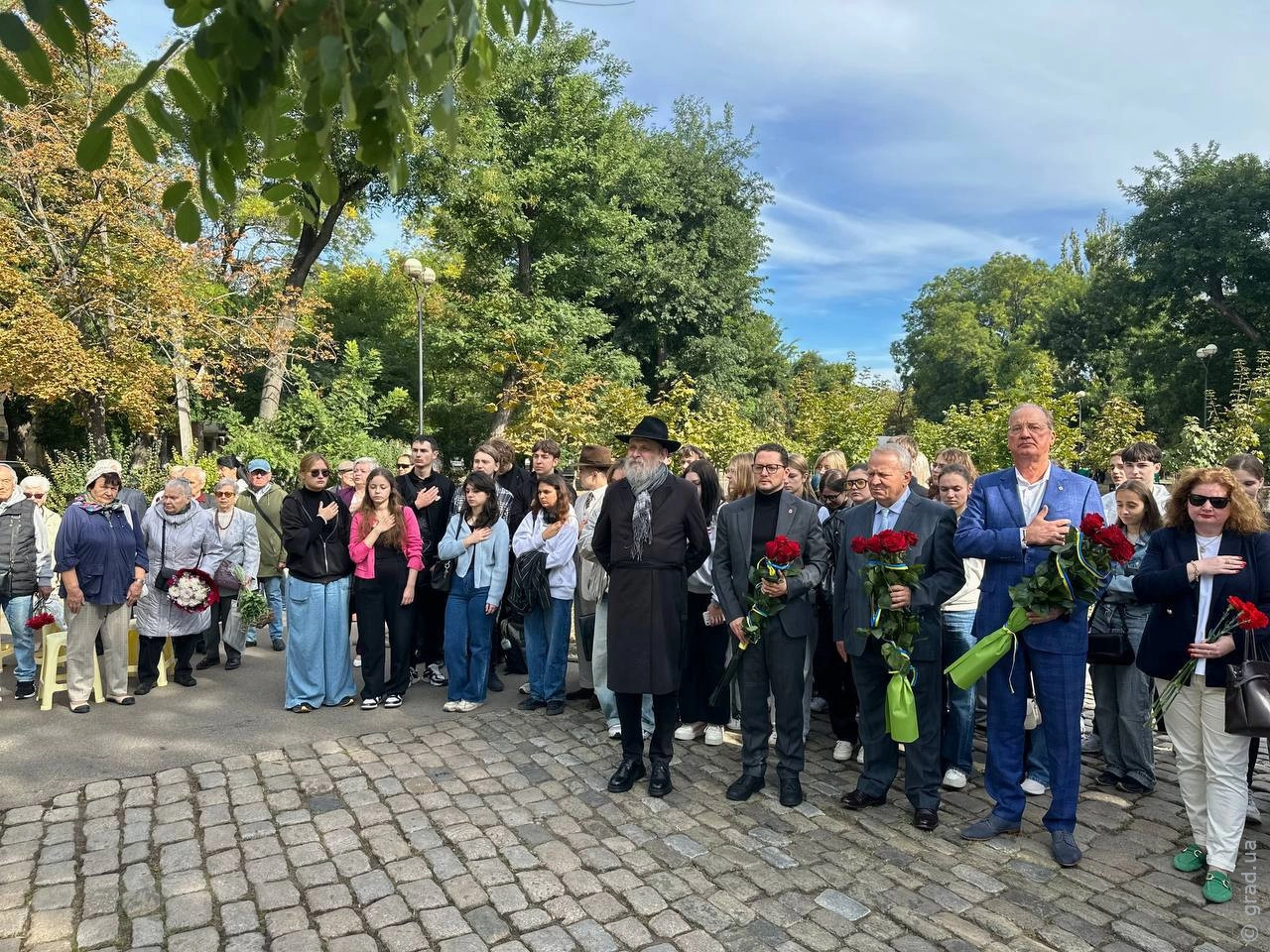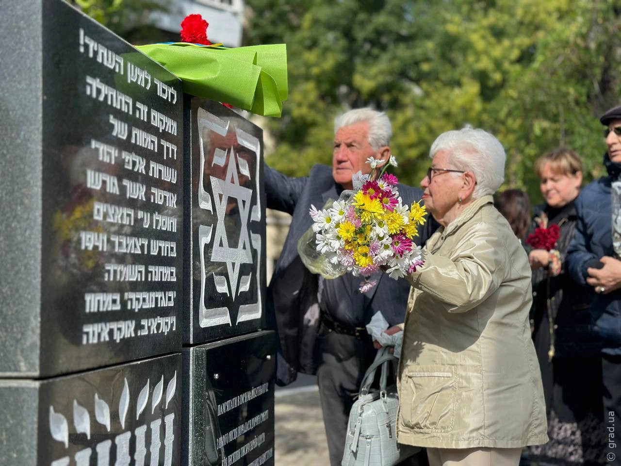 В Одесі разом у Прохорівському сквері відбулася церемонія покладання квітів до пам'ятника жертвам Голокосту та в'язням гетто.