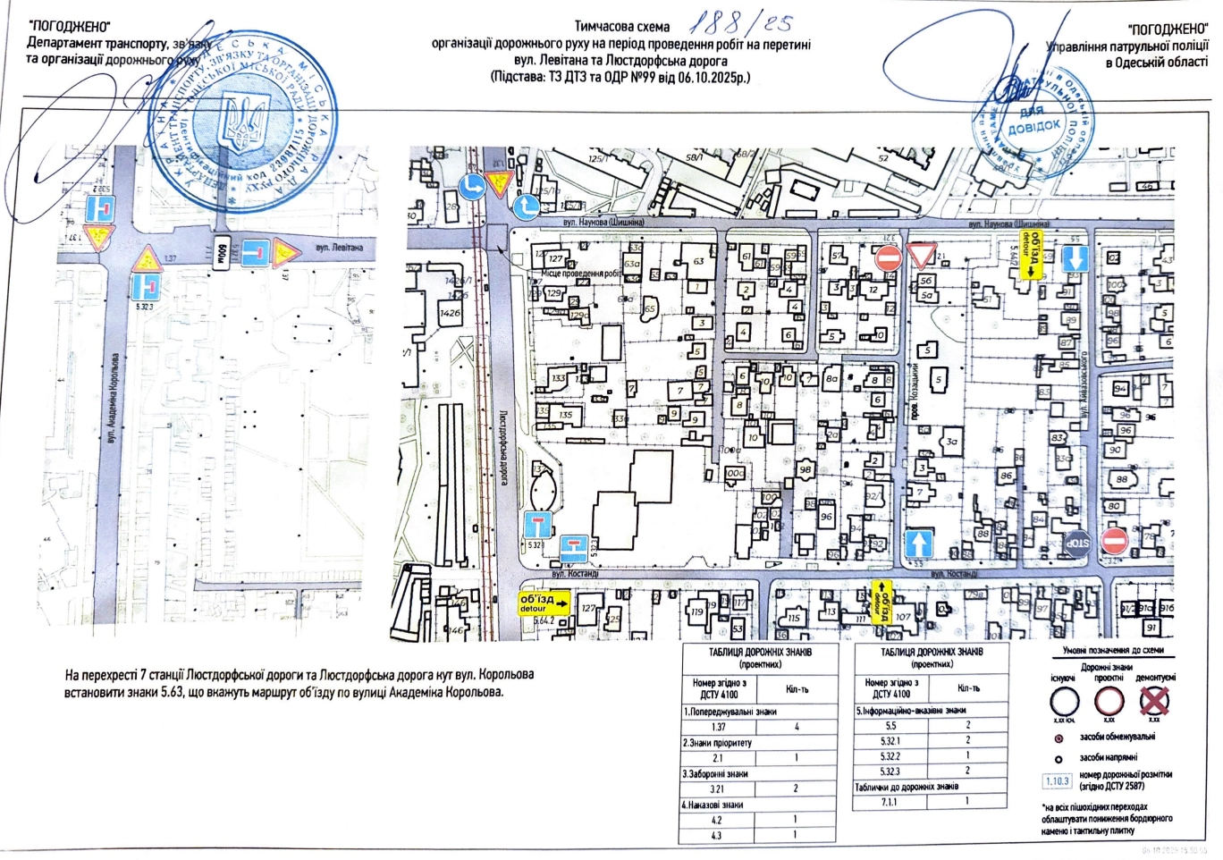 У зв'язку з провалом дорожнього полотна на перехресті Люстдорфської дороги та вулиці Левітана рух транспорту на цій ділянці обмежений. Щоб забезпечити безпеку водіїв та пішоходів, тимчасово вводиться односторонній рух: