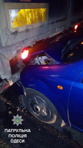 Сегодня ночью на автодороге "Киев - Одесса" водитель автомобиля ВАЗ совершил столкновение с грузовиком и скрылся. Далеко уехать ему не дал полицейский патруль.