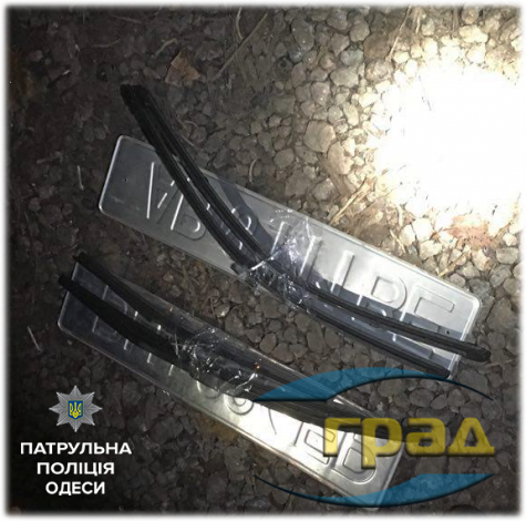 16 февраля ночью в ходе отработки Малиновского района Одессы патрульные заметили отсутствие номерных знаков на двух припаркованных автомобилях. Также, на лобовых стеклах автомобилей были прикреплены записки с требованием заплатить деньги за возвращение автономеров. Во время обследования прилегающей территории полицейские заметили мужчину, который что-то искал. При проведении поверхностного осмотра у него были обнаружены два похищенных автоомбильных номера и щетки от стеклоочистителя.