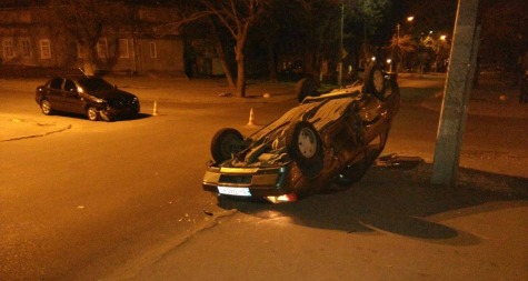 В Одессе в результате ДТП перевернулся автомобиль (видео)
