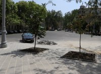 Завершается отделка тротуаров декоративной плиткой «шашка», после чего будут установлены антипарковочные столбики и дорожные знаки, нанесена дорожная разметка.
