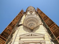 Реставрационно-восстановительные работы проведут и на фасаде здания. Планируется усилить кладку фасадов с помощью инъектирования восстановительными растворами, усилить дверные и оконные проемы, заменить оконные и дверные блоки, отремонтировать цоколь здания, балконы и крыльца.