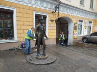 При обследовании бронзовой фигуры поэта на улице Пушкинской был обнаружен износ крепежей и потеря жёсткой связки фундаментных закладных с основанием скульптуры.
