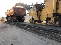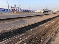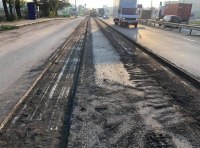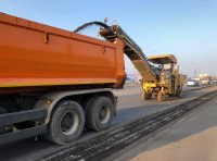 Сейчас продолжаются работы по фрезерованию дорожного полотна на правом проезде дороги.