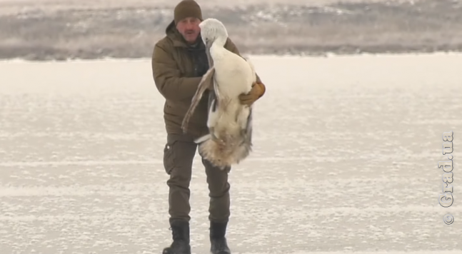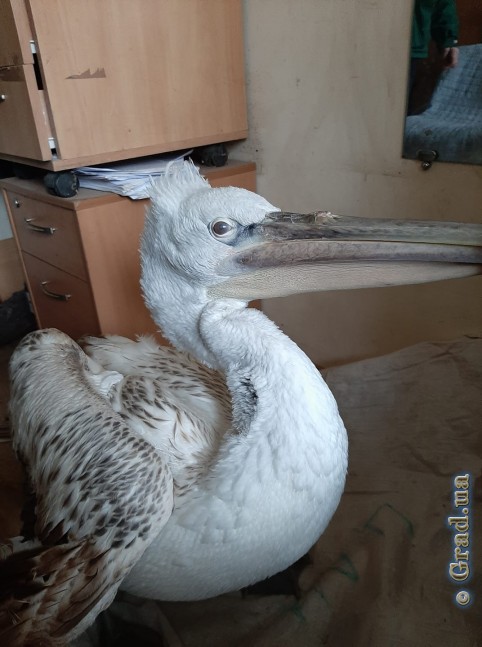Кудрявого пеликана, после проведения спасательной операции привезли в реабилитационный центр одесского зоопарка.