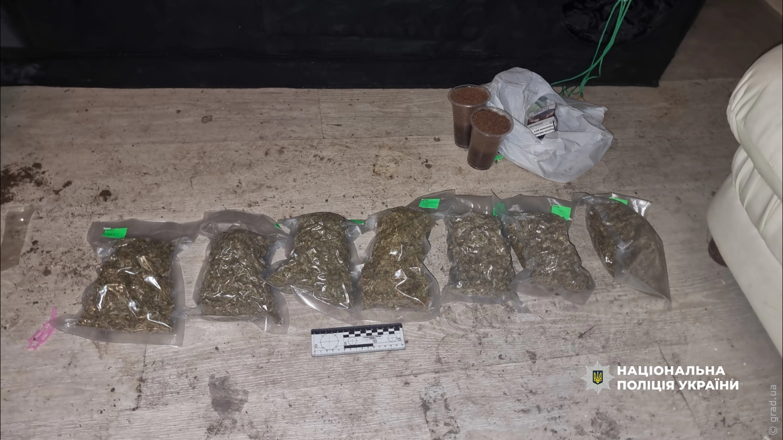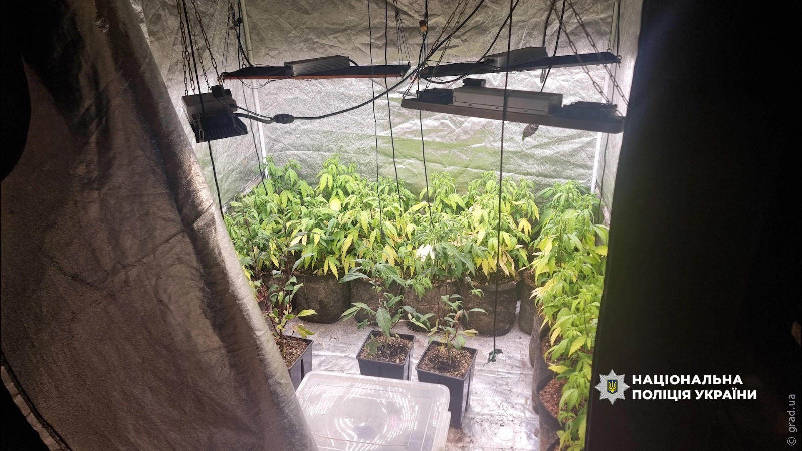Під час обшуку в будинку затриманого поліцейські виявили сім гроубоксів із системами освітлення, обігріву, вентиляції та поливу, де вирощувалися 130 кущів конопель. Крім того, виявлено 1,6 кг каннабісу, пакет із залишками порошкоподібної речовини, вакууматор, електронні ваги, пресмашина та інше обладнання, що використовувалося для виготовлення та фасування наркотиків. Орієнтовна вартість усіх вилучених наркотиків, за цінами «чорного ринку», – понад 8 млн. грн. Усі вилучені речовини спрямовані на експертизу.