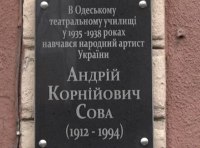 На здании Одесского театрального училища на улице Торговой появилась мемориальная доска народному артисту Украины, известному актеру театра и кино, артисту эстрады, одесситу Андрею Корнеевичу Сове.