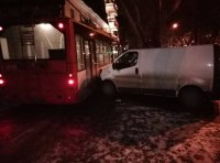 Масштабное ДТП случилось в среду ночью в центре города.В 22:07 по улице Троицкой со стороны улицы Преображенской двигался троллейбус 7-го маршрута, когда на перекрестке с улицей Екатерининской в него врезался Hyundai. Иномарка ехала на красный сигнал светофора. В результате столкновения троллейбус отбросило на припаркованный транспорт.