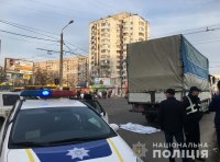 Дорожное происшествие случилось сегодня, около 17:00. Во время движения по улице Генерала Бочарова в направлении проспекта Добровольского грузовой автомобиль МАН наехал на пешехода.