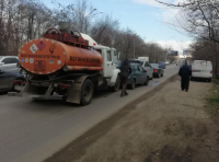 Как сообщает очевидец в соцсети, вблизи торгового центра "Шестой элемент"столкнулись бензовоз и еще несколько легковых автомобилей.