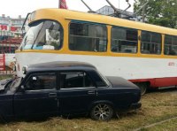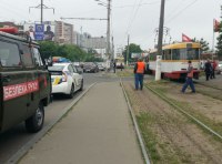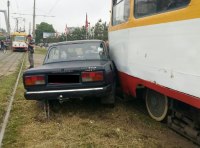 Около получаса назад столкнулись трамвай и легковой автомобиль ВАЗ.