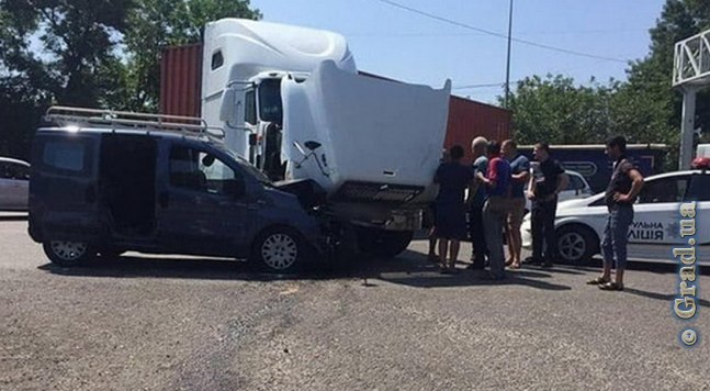 Контейнеровоз и микроавтобус перекрыли проезжую часть, из-за чего движение по автодороге Киев - Одесса на данном участке практически блокировано.
