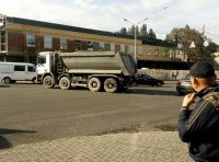 По словам очевидцев ДТП, люди не пострадали. КАМАЗ перекрыл одну из полос движения.