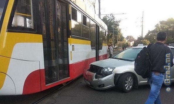 Сегодня утром на улице Маршала Бабаджаняна столкнулись трамвай и легковой автомобиль.