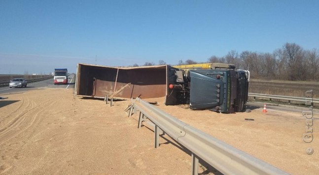 Причиной такой дорожной ситуации стало дорожно-транспортным происшествием. Перевернулся зерновоз, в связи с чем ограничено движение автомобилей в обе стороны.