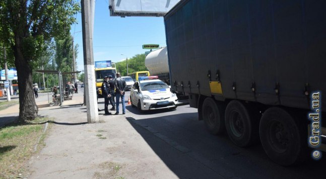 По информации патрульной полиции по предварительным данным тягач IVECO с полуприцепом во время движения на перекрестке задел пешехода.