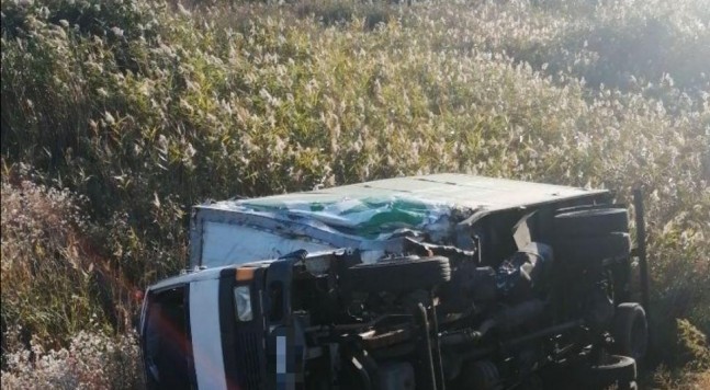 Сегодня днем по Объездной дороге со стороны поселка Котовского двигался грузовой автомобиль Volvo, водитель которого, по предварительной информации, не справился с управлением, в результате чего выехал на встречную полосу, где совершил столкновение с автомобилем ТАТА. От удара фургон отбросило в кювет, где он перевернулся.