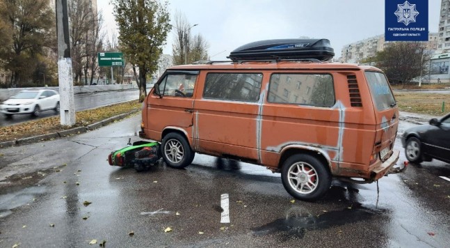 Сегодня по улице Семена Палия угол Высоцкого произошло ДТП. Столкнулись микроавтобус Volkswagen и мопеда Honda.