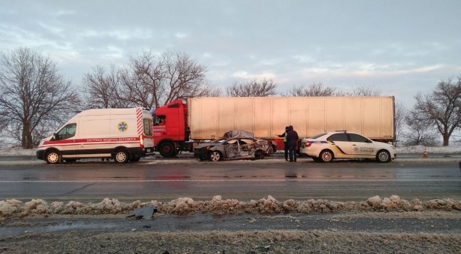ДТП произошло накануне в Раздельнянском районе. На трассе Одесса-Киев водитель Hyundai Elantra потерял управление на скользком участке дороги, выехал на встречную полосу движения и столкнулся с грузовиком DAF.