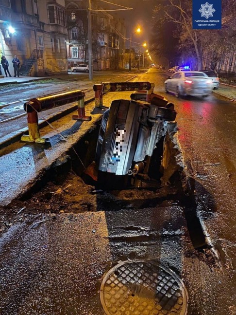 Вчера вечером водитель автомобиля ВАЗ-21099, двигаясь по улице Градоначальницкой, не заметил металлические ограждения, которые выставлены в связи с проведением ремонтных работ на дороге, и совершил наезд на препятствие. После чего автомобиль упал в яму теплотрассы.