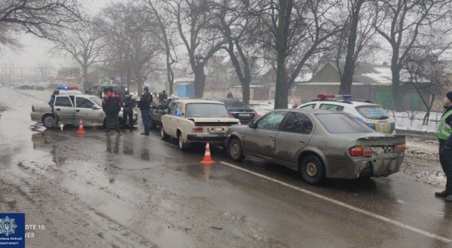 После столкновения по инерции «Opel» выехал на встречную полосу, где столкнулась с автомобилем «Volkswagen». Автомобили, которые двигались позади автомобиля «Volkswagen» в попутном направлении не выдержали безопасную дистанцию, в результате чего столкнулись «ВАЗ-2101», «Nissan» и «Mercedes».