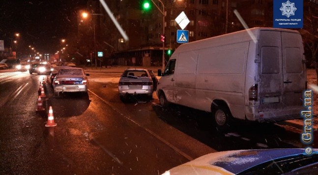 Столкновение трех автомобилей, произошло ночью 14 февраля, на перекрестке улиц Николаевская дорога и Добровольского.