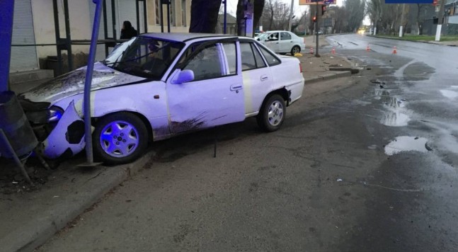 От удара автомобиль «Daewoo» отбросило за пределы проезжей части, где он въехал в остановку общественного транспорта.