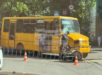 Аварія сталася сьогодні вдень. На перетині проспекту Шевченка та вулиці Семінарської мотоцикліст в'їхав у маршрутку, коли автомобіль здійснював поворот.