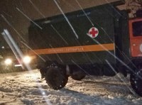 В заснеженном Подольске микроавтобус ГАЗЕЛЬ транспортировал больного мужчину в больницу. На одной из улиц в результате гололеда автомобиль скорой помощи не одолел подъем и остановил движение. К месту вызова был направлен спасательный автомобиль ГАЗ-66.Подразделением службы спасения с помощью троса автомобиль скорой помощи был извлечен на проезжую часть дороги. Погибших и пострадавших в результате инцидента нет.