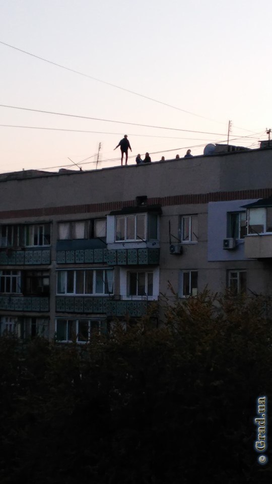 На проспекте Небесной сотни (Маршала Жукова) группа подростков гуляла по крыше девятиэтажного дома.