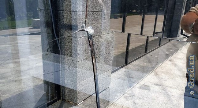 В Одессе вандалы повредили стекло строения, в котором располагается панорамный лифт Греческого парка.