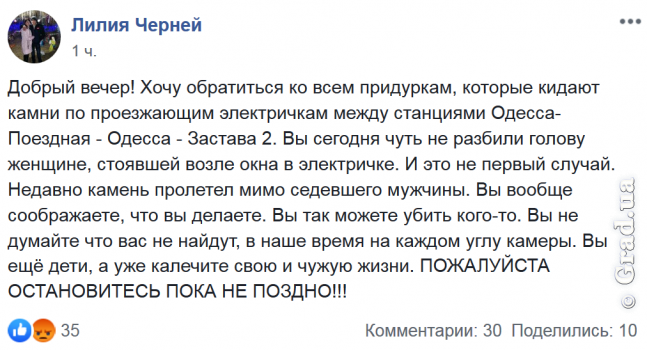 Так, сегодня неизвестные совершили очердную атаку на электропоезд Одесса – Колосовка между станциями Одесса-Поездная - Одесса - Застава 2.