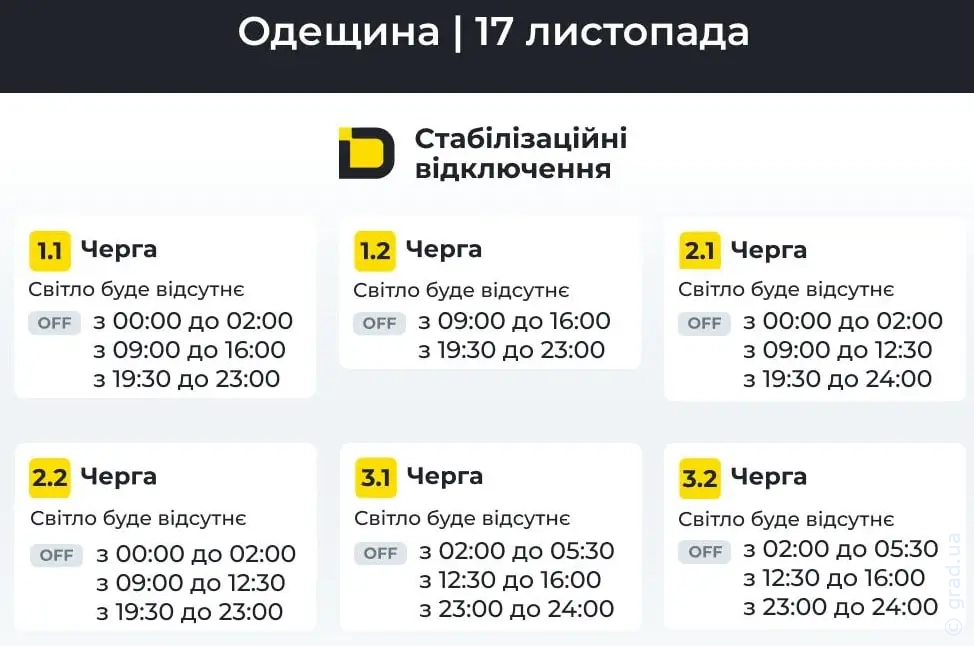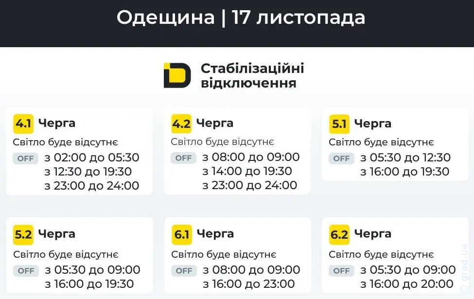 ГРАД » Отключения света, воды и газа » Отключение света в Одессе 17 ноября 2025 года