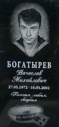 Вячеслав Богатырев был похоронен на Таировском кладбище в г. Одессе. Как признавалась его супруга, подбирая фото на памятник, они с родственниками, ни на миг не сомневаясь, остановили свой выбор на карточке из училища, где Богатырев в морской форме. Благодаря этому для поклонников творчества Вячеслава будет несложно найти его могилу, ведь с памятника на них смотрит чуть повзрослевший, но все тот же Шурка Ластиков из «Секретного фарватера».