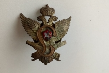 Юнкера носили алые погоны с желтым вензелем великого князя Сергея Михайловича в виде буквы «С».