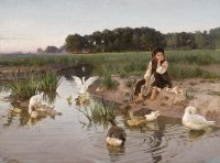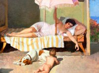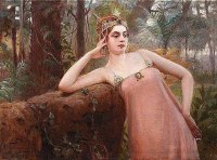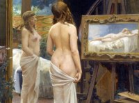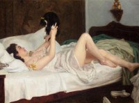 Он писал полотна на исторические и религиозные темы, пейзажи, портреты, в том числе салонные, жанровые сцены, пикантные «ню».