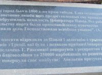 Присланные ко мне, от жителей Одессы, померанцы я получил, и видя, как в присылке сей и в письме, при оной мне доставленном, знаки вашего и всех их усердия, изъявляю через сие вам и всем жителям одесским мое благоволение и благодарность, пребывая к вам благосклонный, Павел.