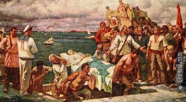 Тысячные толпы стекаются в порт к лежащему на берегу трупу убитого матроса Омельчука... На груди убитого лежит написанное от имени команды воззвание, что Омельчук погиб за правду, сказав офицеру, что пища дается плохая. Народ непрерывно бросает пожертвования в поставленную у изголовья кружку на похороны матроса. Прибыв в Одессу, матросы в шлюпке перевезли труп на берег, предупредив местные власти, что в случае попытки убрать его они будут стрелять из орудий. Несколько раз на броненосце подымался красный флаг. Команда броненосца, обойдя все пароходы, заставила рабочих прекратить работы. Рабочие угольщики доставили команде пищу. Команда готовит убитому торжественные похороны. Сегодня вечером ожидается черноморская эскадра. В городе необычайное возбуждение.