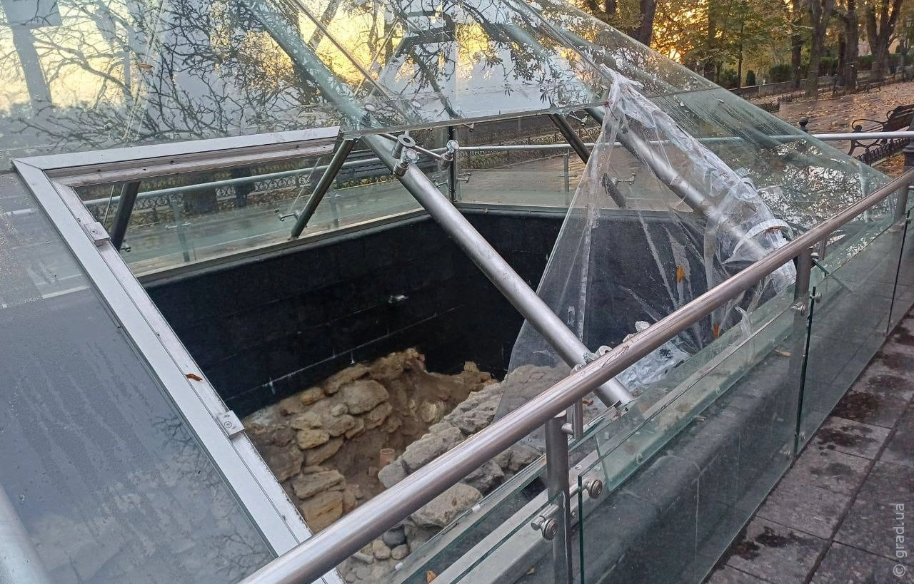 Сегодня ночью, 18 ноября, неизвестные разбили стекло пирамиды-музея на Приморском бульваре в Одессе. Под куполом находятся артефакты древнегреческого поселения VI–V веков до н. э., обнаруженные археологами в 2008 году.