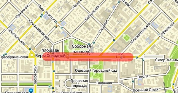 - по направлению движения к Соборной площади - от ул. Греческой на ул. Ришельевскую, ул. Бунина, пл. Веры Холодной, Соборную площадь;