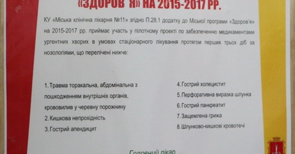 В рамках муниципальной программы люди, попавшие в реанимацию, в течение трех дней бесплатно получают необходимые медикаменты. Кроме того, из городского бюджета Одессы по программе «Здоровье» финансируется бесплатная высокотехнологическая томографическая диагностика — КТ и МРТ для пациентов с черепно-мозговыми и спинальными травмами, инсультами и другими неотложными состояниями. На эти цели из бюджета города выделено 5 миллионов гривен. В дальнейшем будет рассмотрена возможность продолжения реализации программы, говорят чиновники.