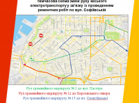 С 22 марта в связи с началом ремонтных работ по улице Софиевской начнет действовать ограничение движения транспорта. Частично он будет отводиться по улицам Елисаветинской и Ольгиевской, Торговой и Пастера.
