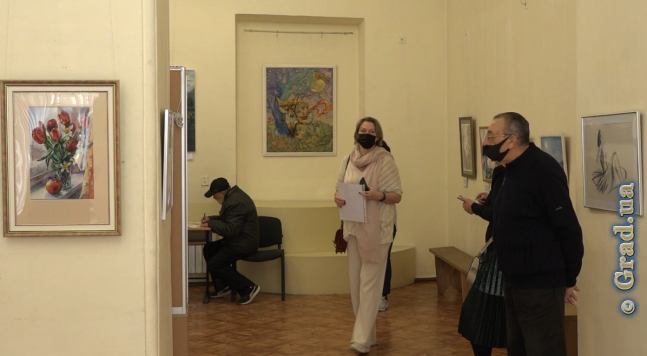 Здесь на выставке я представила две свои картины – позади меня вы видите черно-белую – она олицетворение цветов, которые еще не распустились. В феврале очень хочется тепла, очень хочется любви, очень хочется цвета, но его там нет, поскольку цветов нет еще. И я представила еще одну свою картину – она более яркая, более насыщенная, поскольку там уже расцвели они и вот такие два контраста – чёрно-белая и цветная.