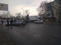 Как уточняет пресс-служба Управления патрульной полиции, сегодня, около 15.30, произошло столкновение 6 транспортных средств ( бетономешалка, ИЖ-4, «Опель», «Тойота», «Мазда, «Славута») в районе перекрестка Ивановский мост – улица В.Стуса.