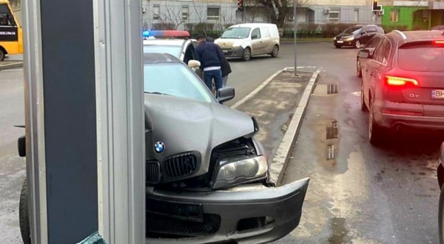 Сегодня днем водитель на автомобиле BMW, двигаясь по улице Святослава Рихтера, врезался в рекламный щит.